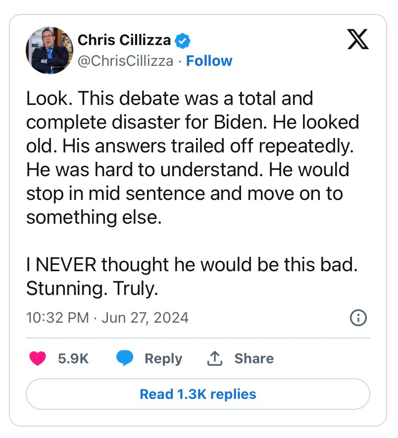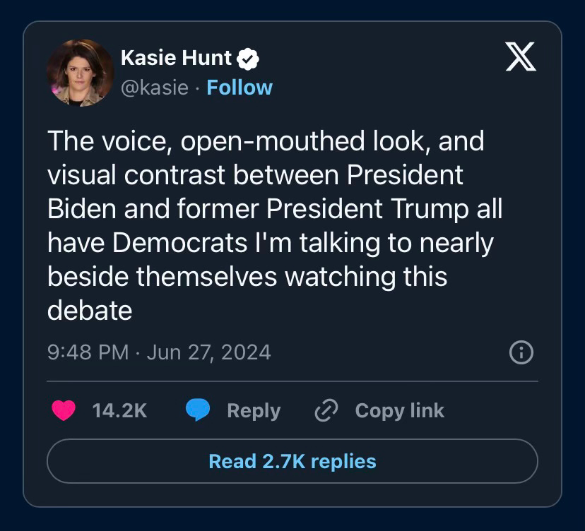 For those who were paying attention, seeing Biden crash and burn was a sigh of relief. “See, we told you so.” Common sense had finally found the willfully ignorant, in spite of their valiant efforts to avoid the truth. Their argument briefly shifted from Biden governing as some kind of intellectual powerhouse before the debate and then morphed into the declaration that they will vote for his corpse before they even consider voting for Trump.