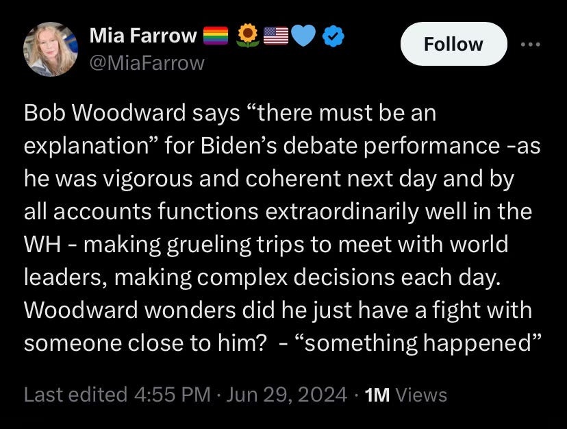 But the most troubling aspect of this whole debacle is that the president’s entourage has known about his condition, said nothing, and yet they seemed to have all the confidence in the world that they can win the election. When these people had the opportunity to speak up and nominate someone else for the most important job on the planet, they were silent. The democrats are committed to the bed of lies they have created.